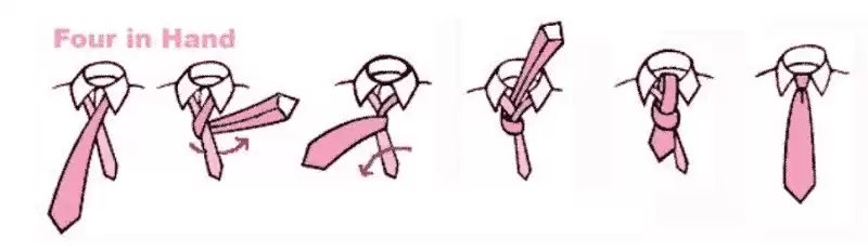 - Gunakan ikatan Four-in-Hand kerana ikatan tersebut hanya menggunakan sebahagian kecil tali leher untuk menghasikan simpulannya