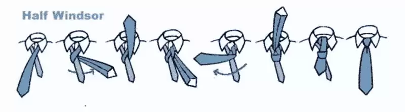 Ikatan Half Windsor boleh dihasilkan berpandukan langkah-langkah berikut: