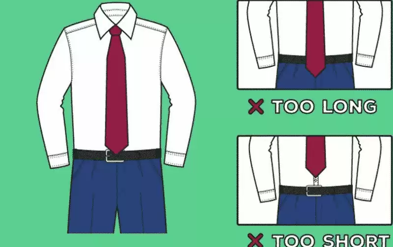 Hujung tali leher yang dipakai mestilah betul-betul berada di atas kepala talipinggang (belt buckle) untuk cara pemakaian yang betul. Jika tidak, rujuk tips berikut untuk penyelesaiannya: