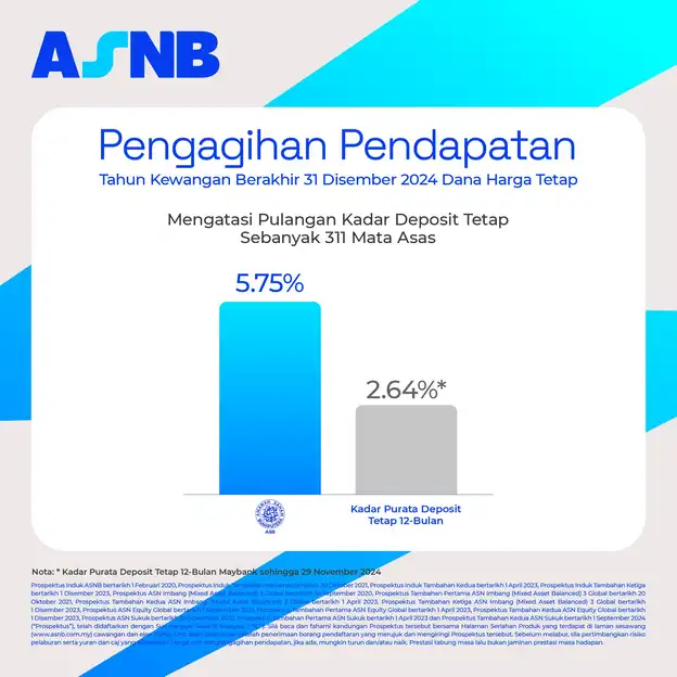 Berikut dikongsikan jumlah pembayaran bagi tahun 2024 yang diumumkan oleh ASNB.
