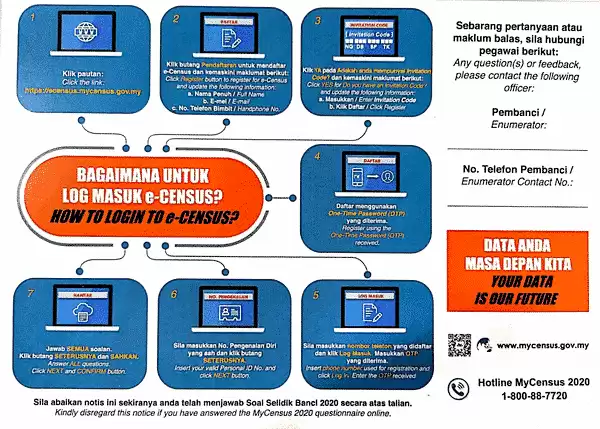NOTA: Jika anda tidak mengisi borang banci secara Online, pembanci akan membuat bancian secara bersemuka di rumah anda pada fasa kedua bancian nanti.