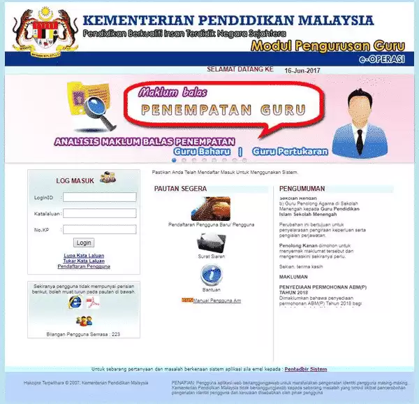 eOperasi KPM: Kemaskini Maklumat Guru & Semakan Status Online