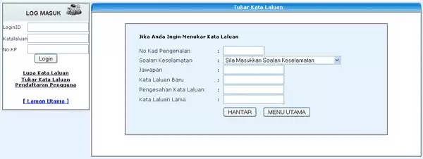 - 5. kembali ke halaman utama untuk Log Masuk menggunakan ID, kata laluan dan nombor kad pengenalan yang digunakan ketika mendaftar