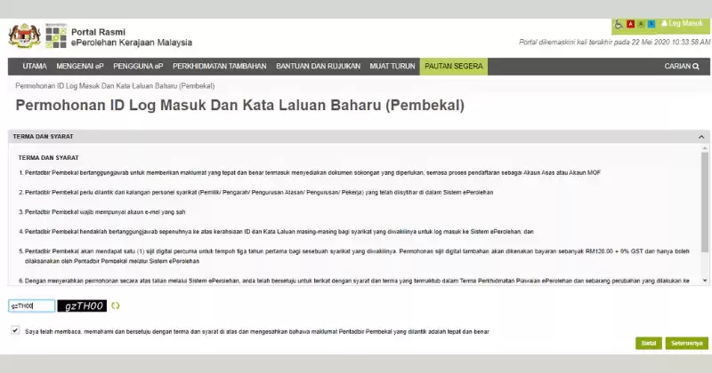 - Kemudian masukkan nombor aksara Captcha yang dipaparkan.