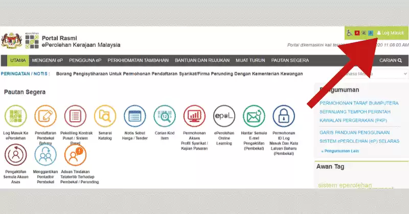 Login ePerolehan : Permohonan Tender & Sebut Harga Dan Cara Daftar Sebagai Pembekal Baharu