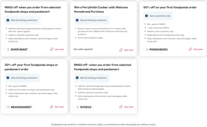 Foodpanda Vouchers & Promo Codes Di Malaysia