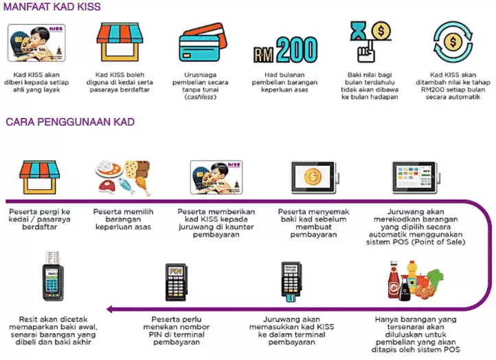 - Kad KISS akan ditambah nilai pada kadar RM200 secara automatik pada setiap bulan