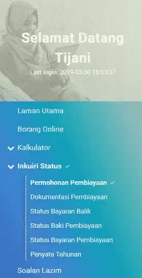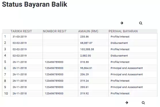 - Berikut adalah paparan jika anda ingin menyemak status bayaran balik pinjaman: