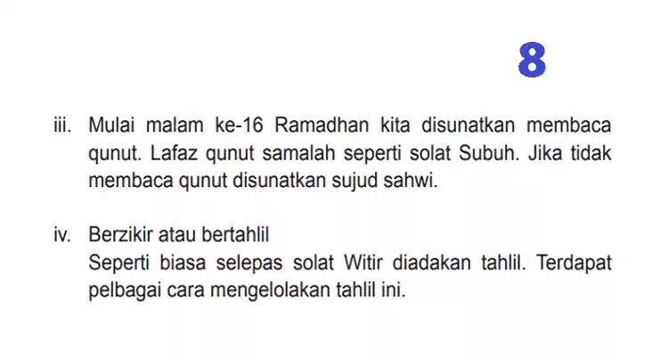 Untuk panduan solat 8 rakaat yang jelas, rujuk langkah-langkah dalam imej berikut :-
