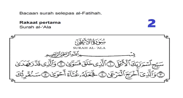 - Rakaat pertama : Surah al-‘Ala