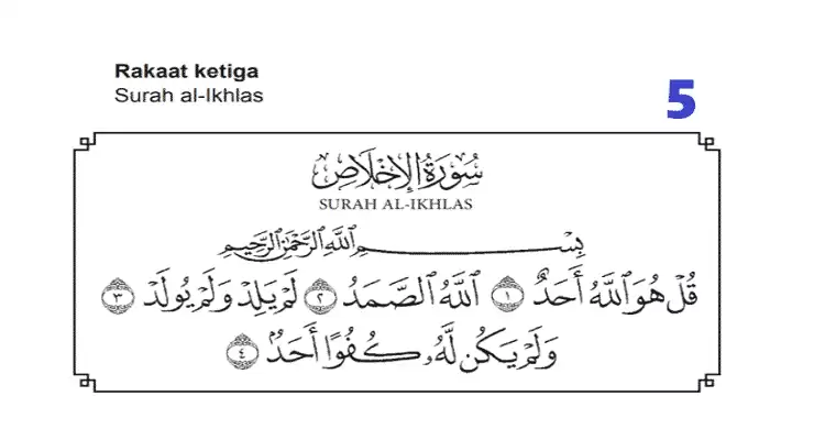 - Rakaat ketiga : Surah al-Ikhlas, Surah al-Falaq & Surah al-Nas