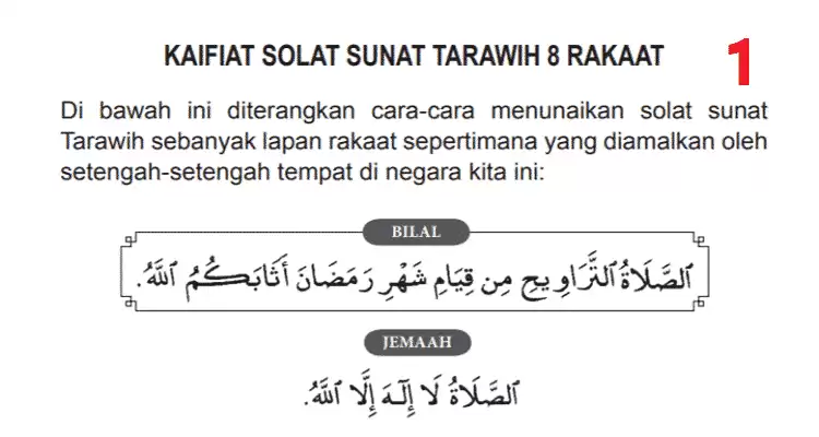 Untuk panduan solat 8 rakaat yang jelas, rujuk langkah-langkah dalam imej berikut :-