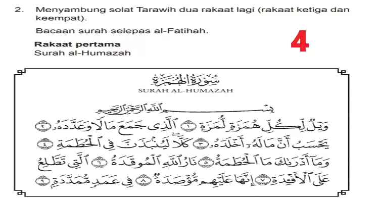 - Rakaat pertama : Surah al-Humazah
