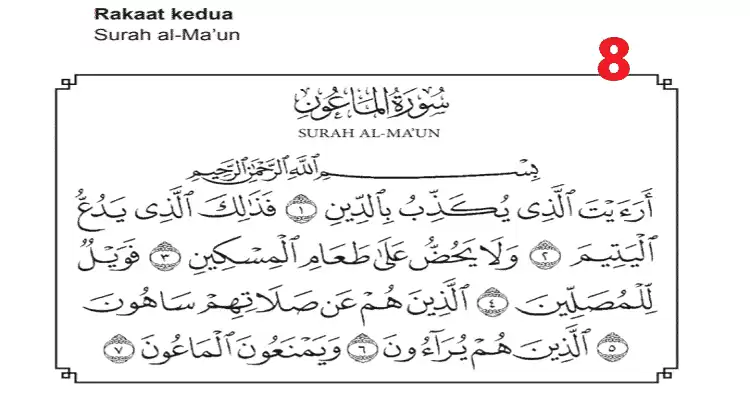 - Rakaat kedua : Surah al-Ma’un