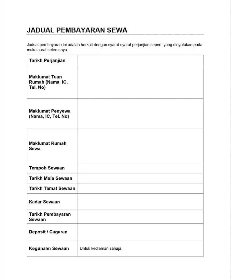 Jadual ini bagi memudahkan urusan pembayaran oleh penyewa dan juga pemilik rumah sewa.