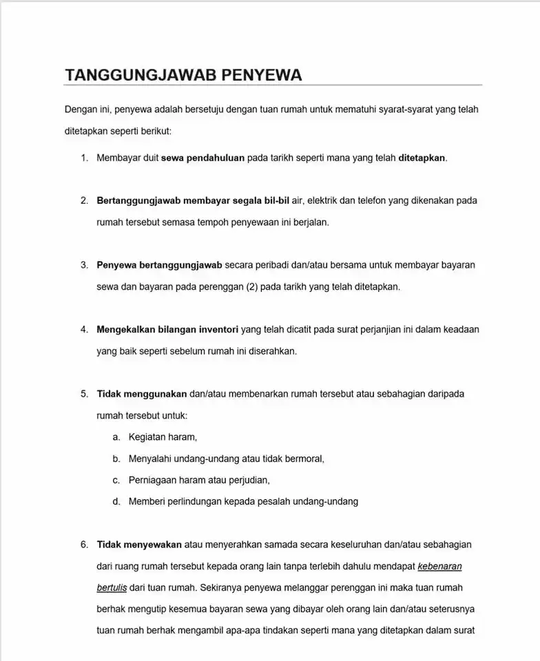 Muat turun contoh tenancy agreement dalam Bahasa Melayu melalui pautan berikut: